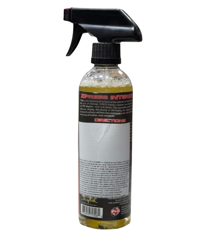 Perfecto para limpiar todas las superficies del interior de vehículos sin riesgo de dañarlas. El Limpiador de Interiores XPRESS fue desarrollado para cuero, vinilo y plástico. Este increíble producto limpia sin resecar, decolorar ni dañar la superficie. Las superficies limpiadas se sentirán limpias y sin residuos. Diseñado para aplicaciones rápidas, el Limpiador de Interiores XPRESS elimina la suciedad, la grasa, el aceite y otras marcas de tráfico que se acumulan con el uso normal.