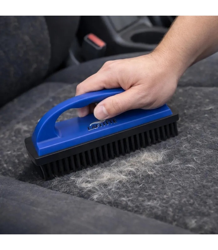 Alta adherencia para remover pelos incrustados en tapizados, alfombras y baúl. Cerdas de goma flexible que levantan el pelo sin dañar la tela. Ideal para detailing interior profesional y limpieza doméstica. Agarre ergonómico que permite trabajar con firmeza y comodidad. Reutilizable, lavable y de larga duración. CARACTERISTICAS TECNICAS Marca: Laffitte Modelo: CE040-D Material: cuerpo plástico resistente y cerdas de goma Color: azul con base negra Largo: 15 cm Ancho: 5 cm Alto: 8.5 cm USOS RECOMENDADOS Limpieza de pelos de perro y gato en asientos de tela. Remoción de pelusa en alfombras automotrices. Interior de baúl y paneles tapizados. Sillones, sillas y superficies textiles del hogar. Su tamaño compacto permite trabajar en zonas reducidas del vehículo, logrando un resultado profesional tanto para detailers como para uso particular. CONTENIDO 1 Cepillo Quita Pelos Laffitte CE040-D Producto ideal para quienes buscan mantener el interior del vehículo libre de pelos, suciedad y residuos, mejorando la terminación final del trabajo de detailing.