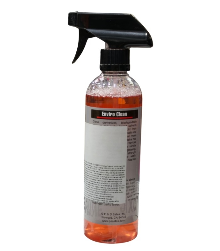 Derivados cítricos, limpiadores biodegradables y solventes a base de agua se encargan de disolver grasitud y levantar la mugre presente en alfombras, vinilos, motores, pasarruedas y superficies pintadas tambien. Enviro Clean permite el enjuague de todas aquellas partículas y depositos de suciedad que no pertenecen a tu auto! Se trata de una solución amigable para con el medio ambiente aún cuando es capaz de realizar una limpieza profunda, un trabajo pesado de desengrase. Puede usarse puro en situaciones extremas y se puede diluir con agua para trabajos más ligeros (ej. 4:1 para buches de rueda o 10:1 para alfombras).